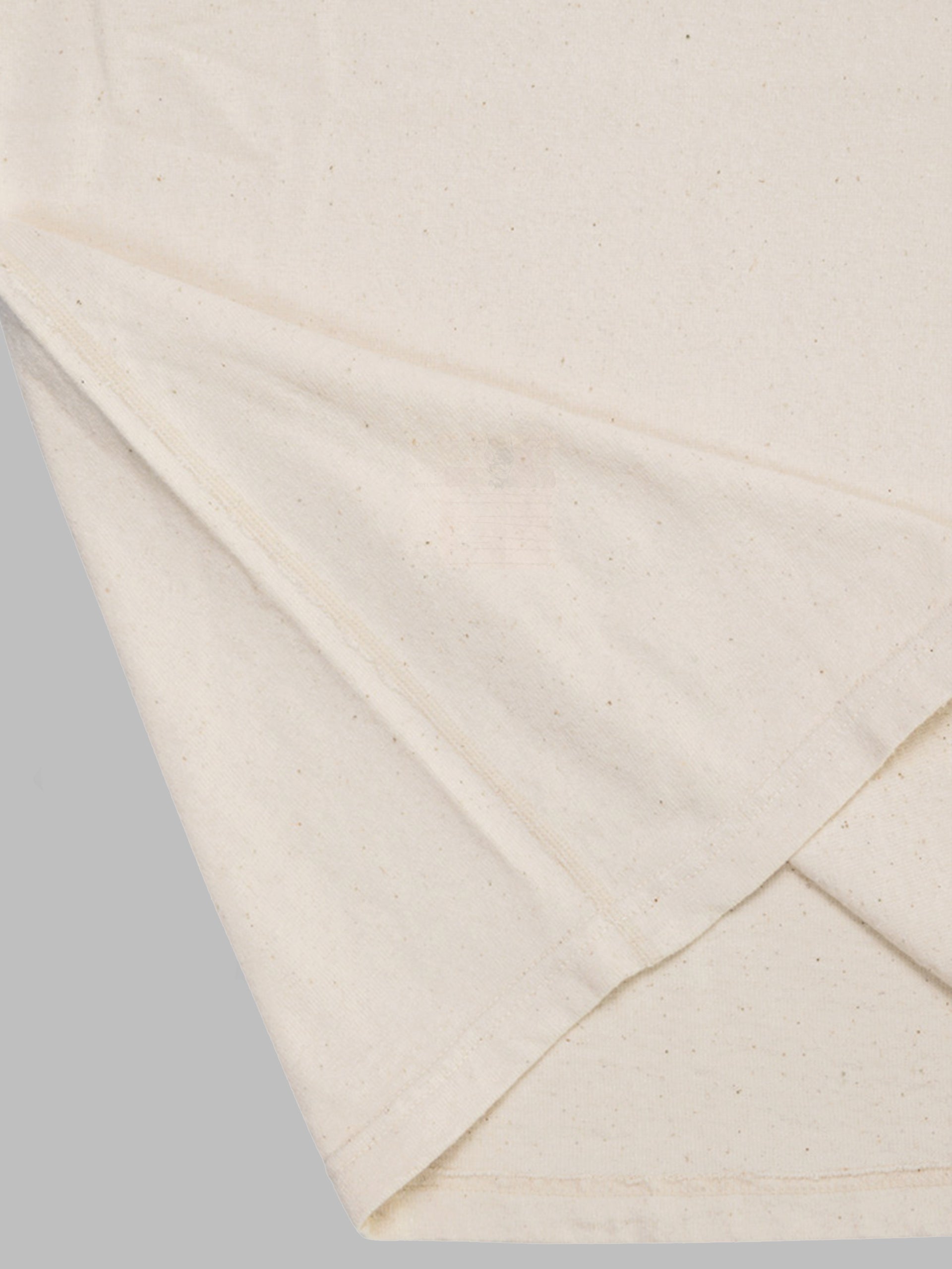 The Creamish Color "Natural" is Made of Unprocessed Cotton Showing Fiber Specks Through the Fabric as an Intentional Look of Tee.