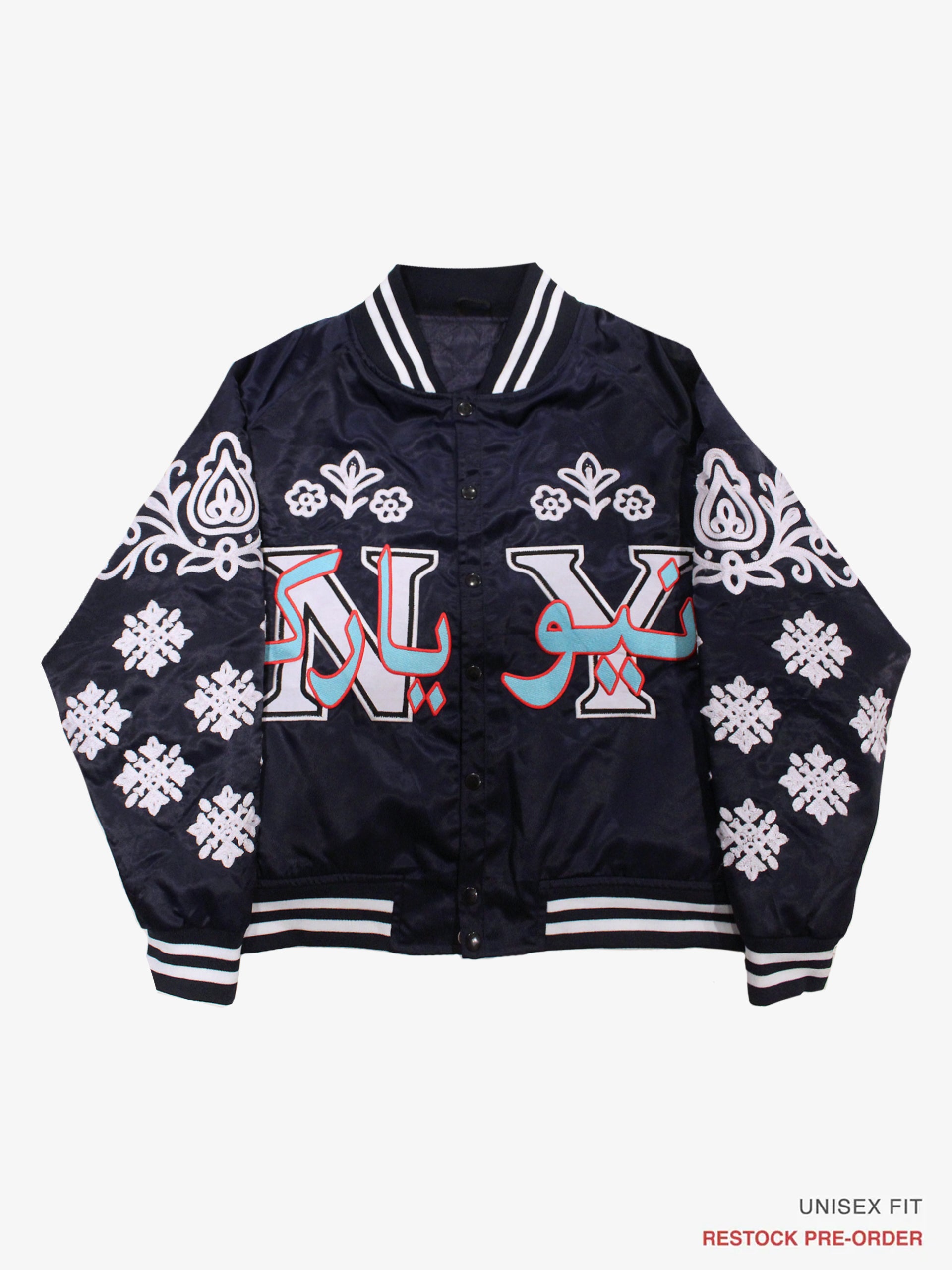 NY "Diaspora Yanks" Satin Baseball Jacket: Navy | Restock Pre-Order