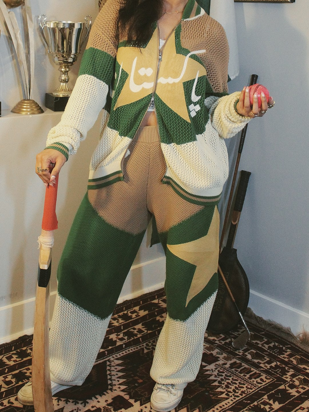 Our Reimagined Take On A Pakistan Cricket Warm-Up Suit in Crochet Knit