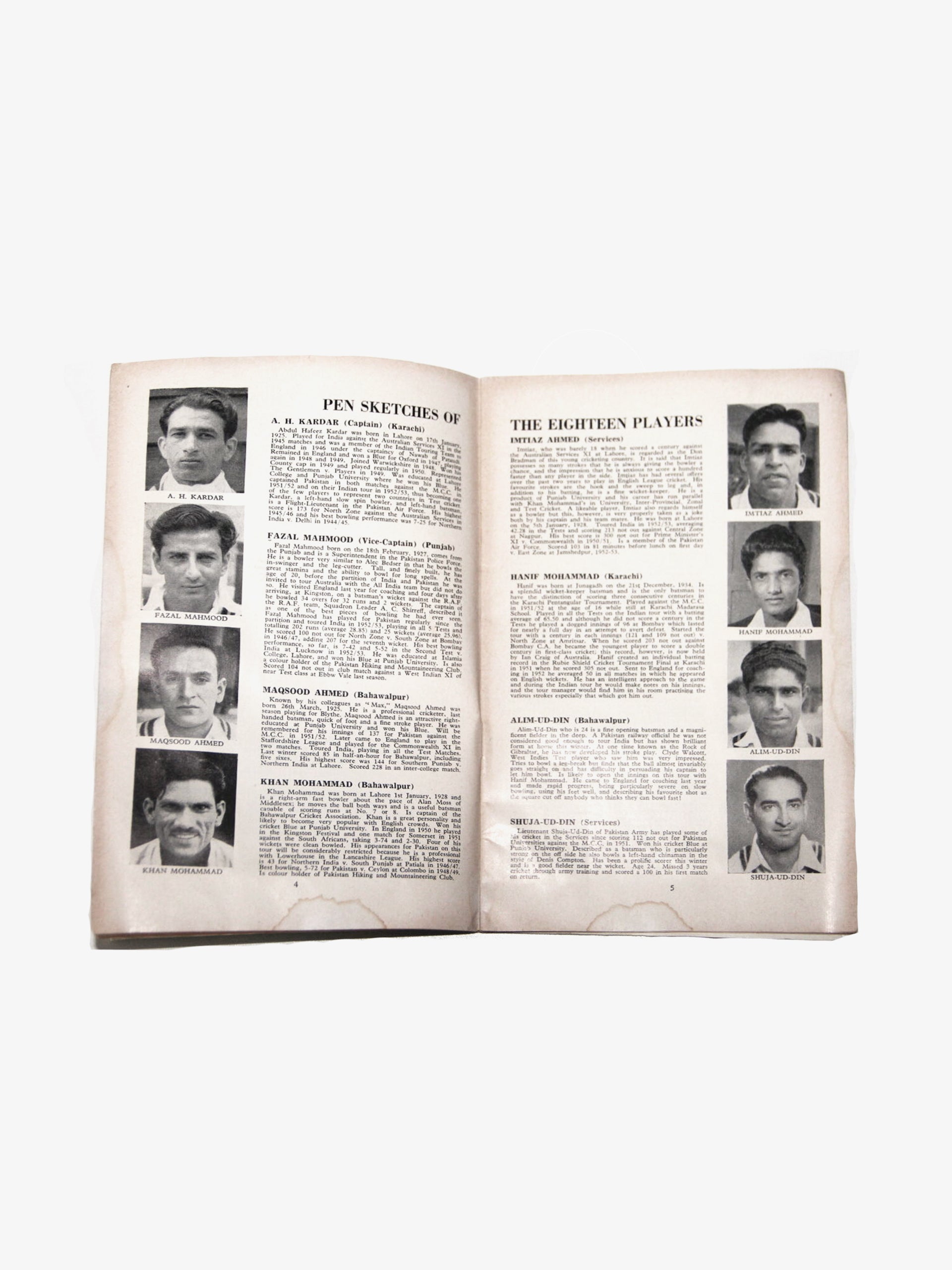 From that same historical year, this very rare and original 1954 "Cricketers From Pakistan" 24 page paperback is the official "Tour of England Souvenir Book" and a collector or Pakistani cricket enthusiast's treasure.