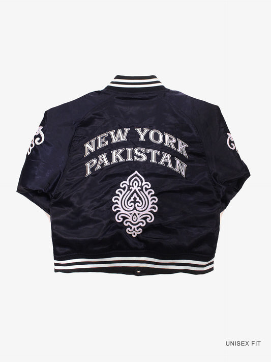 NY "Diaspora Yanks" Satin Baseball Jacket: Navy